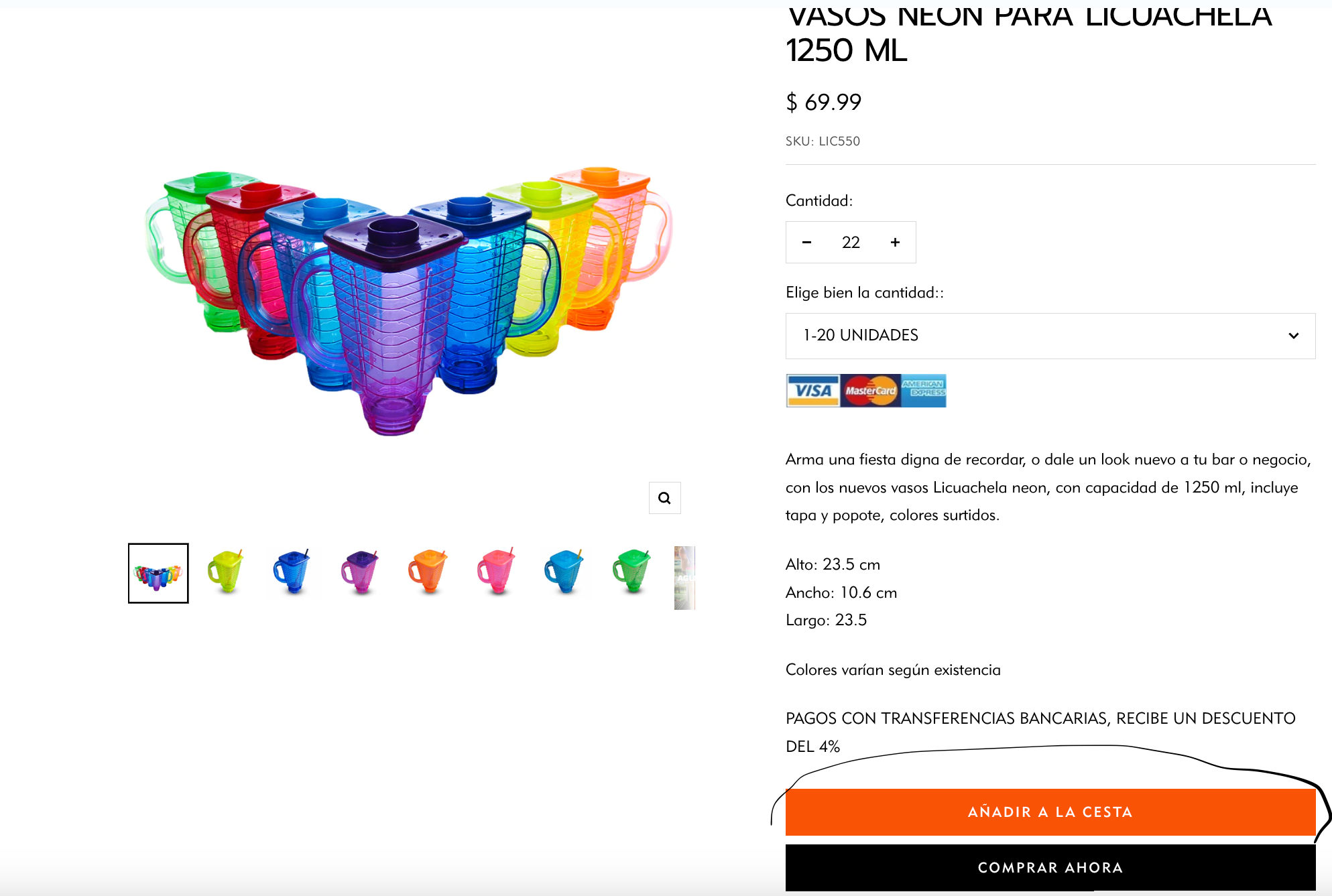 Una vez correcto la cantidad de tu pedido pica el botón de "Agregar a la Cesta".